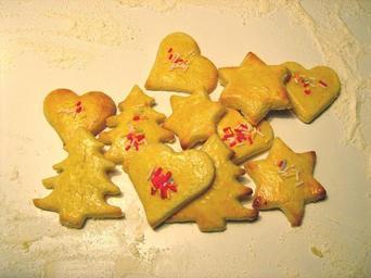 Keywords: Plätzchen.jpg de Weihnachtsplätzchen aus Mürbeteig own Hedwig von Ebbel 2008-11-30 Biscuits Christmas cookies Heart-shaped cookies Christmas tree cookies Star-shaped cookies Sprinkles Egg yolk icing