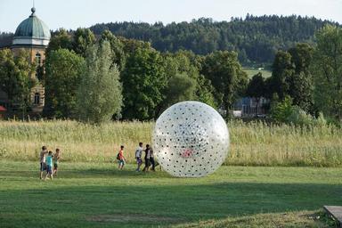 Keywords: play race tuttlingen park school children about slide look forward joy fun turn tree green meadow field danube