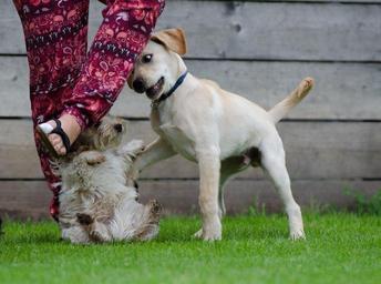 Keywords: playing dogs labrador puppy games puppy group big and small