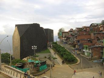| Keywords: Plaza España Medellin.JPG en The building of Plaza España Library in the hill-quarter of Santo Domingo Savio North-East Medellín Colombia The library was built during the administration of Major Fajardo in one of the most violent districts of the city as a peace process to involve marginalized communities es El edificio de la Biblioteca Plaza España en el alto barrio Santo Domingo Savio La obra fue construida durante la admnistración del alcalde Fajardo en uno de los sectores más violentos de la ciudad como una estrategia de pacificación de las comunidades más marginadas Own Albeiror24 2008-08-16 Biblioteca España |