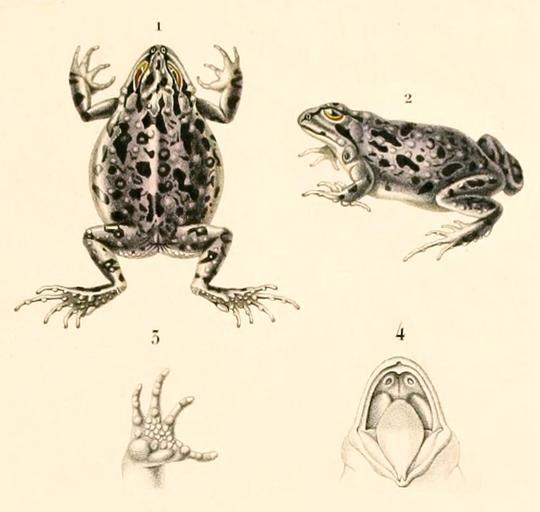 Keywords: Pleurodema marmoratum 1847.jpg « Leiuperus marmoratus » Pleurodema marmoratum « Leiuperus marmoratus » Pleurodema marmoratum http //archive org/stream/voyagedanslamr91847orbi page/n197/mode/2up Voyage dans l'Amérique méridionale in Alcide Dessalines d'Orbigny 1847 Extracted from Voyage dans l'Amérique méridionale - pl 13 jpg PD-old Pleurodema marmoratum drawing 12 21 16 February 2013 UTC Pleurodema marmoratum 1847 jpg Pleurodema marmoratum Leiuperidae feet Leiuperidae heads Voyage dans l'Amérique méridionale - amphibians |