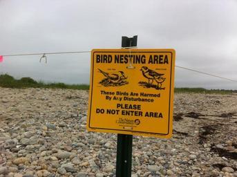 Keywords: Plover Tern Sign.JPG en A Bird Nesting Area sign at Quicksand Pond own Rbyteisbst 41 29 72 0 N 71 8 0 W alt 0 282009_source exif_heading 302 840237 Cc-zero Signs