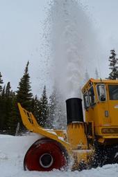 Keywords: Rotary Plow blowing snow off the road on Thursday March 26