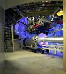 | Keywords: (C-2004-01718): The Direct Connect Combustion Rig, used for rocket-based-combined-cycle development testing, converted the HTF test section from an open-jet to a closed configuration that simulates only an engine’s combustion chamber. The smaller-diameter pipe is a dummy insert used for calibration. The model support and injection system used with open-jet testing is clearly visible over the tunnel. (C-2004-01718): The Direct Connect Combustion Rig, used for rocket-based-combined-cycle development testing, converted the HTF test section from an open-jet to a closed configuration that simulates only an engine’s combustion chamber. The smaller-diameter pipe is a dummy insert used for calibration. The model support and injection system used with open-jet testing is clearly visible over the tunnel. |