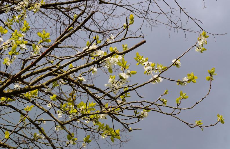 Keywords: plum tree flowers spring branch flowering twig blossom plum tree flowers nature bloom blossomed flora white green branches inflorescence fruit tree flowering shrub garden