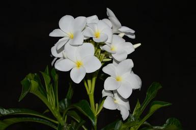 Keywords: plumeria white flower yellow center nature green garden