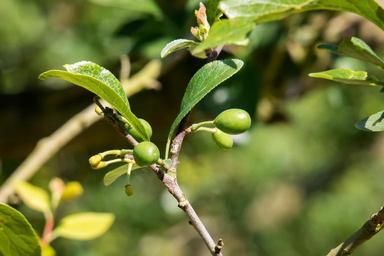 Keywords: plums plum tree fruit young young fruit immature fruit tree green branch road