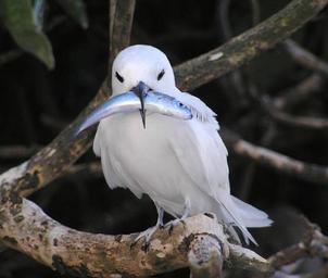 | Keywords: pmnm papahānaumokuākea white tern bird birding birds fish capture feeding nest young offspring cornett/usfws cornettusfws animal outdoor aquatic bird Within the safeguarded waters of Papahānaumokuākea Marine National Monument, white terns are able to gather a bountiful feast of small fish and squid. This abundance of prey is critical for raising healthy chicks, who are fed whole squid or fish every three hours after hatching! Unlike many seabirds, white terns feed their chicks whole food items rather than regurgitated food. Photo Credit: C. Cornett/USFWS Within the safeguarded waters of Papahānaumokuākea Marine National Monument, white terns are able to gather a bountiful feast of small fish and squid. This abundance of prey is critical for raising healthy chicks, who are fed whole squid or fish every three hours after hatching! Unlike many seabirds, white terns feed their chicks whole food items rather than regurgitated food. Photo Credit: C. Cornett/USFWS |