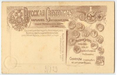 | Keywords: Лещинский паспарту.png Фотог аф ихаил Яковлевич Лещинский Паспа ту Русской светописи Ха ьков Се гиевская площадь scan User Vizu 1908-1914 Creator Mikhail Leshinsky PD-art PD-RusEmpire <gallery>File Лещинский По т ет юноши tif File Лещинский обложка по т ета tif File Лещинский Я Паспа ту jpg</gallery> Mikhail Leshinsky Historical coats of arms of Russia |