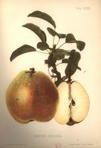 Keywords: Зимняя деканка.png ru Зимняя деканка 1906 Атлас плодов под едакцией Адама Г ебницкого Adam Hrebnicki other versions Custom license marker 2016 01 19 PD-RusEmpire Paintings of pears from Atlas of fruit Pyrus communis cultivars