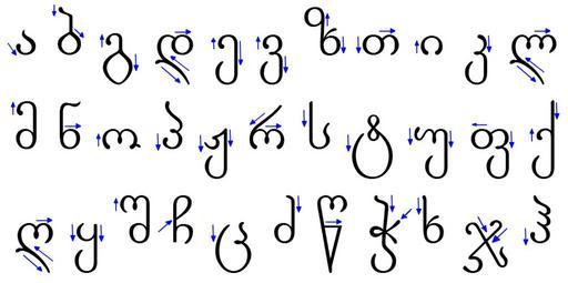 Keywords: მხედრულით წერის მიმართულება.png en Writing directions table for Mkhedruli script of the Georgian alphabet 2013 own Jaqeli alphabet Uploaded with UploadWizard Mkhedruli letters