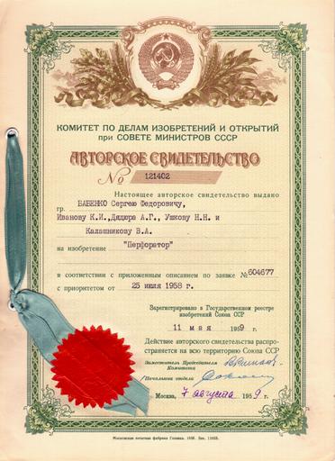 Keywords: Перфоратор.png ru Авто ское свидетельство 121402 от 11 мая 1959 года 2013-04-12 17 43 09 own Folax PD-RU-exempt Insignia cc-by-sa-3 0 Invention author s certificate