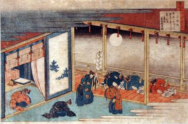 | Keywords: Poem by Sanjo-in (5765339215).jpg en <b>Accession Number </b> 1957 194 <b>Display Artist </b> Katsushika Hokusai <b>Display Title </b> Poem by Sanjo-in <b>Translation s </b> Sanjoin <b>Series Title </b> One-hundred Poems as Explained by the Nurse <b>Suite Name </b> Hyakunin isshu uba ga etoki <b>Creation Date </b> 1835 <b>Medium </b> Woodblock <b>Height </b> 9 3/4 in <b>Width </b> 14 1/2 in <b>Display Dimensions </b> 9 3/4 in x 14 1/2 in 24 77 cm x 36 83 cm <b>Publisher </b> Iseya Sanjiro <b>Credit Line </b> Bequest of Mrs Cora Timken Burnett <b>Label Copy </b> The poetry anthology One Hundred Poems has been a popular source for Japanese art and literature since the thirteenth century Hokusai invented the simple and nave character of the nurse as the fictitious source for the interpretations of the cryptic poems as he renders them in this series of prints This print depicts a Shinto autumn moon festival in honor of Susanoo god of the moon and storms One figure holds a jar of sake on a tray Another figure holds the Shinto prayer staff with eight pieces of folded white paper in reference to the eight-headed dragon that Susanoo slayed to redeem himself after a fall from grace The poet Sanj -in was emperor of Japan between 1012 and 1016 when he was forced to abdicate He composed this poem invoking the moon shortly thereafter before his death the following year In his choice of imagery Hokusai seems to suggest that the poet may have been praying for a heroic deed like Susanoos that would similarly reinstate his position as emperor <b>Label Copy Spanish </b> La antologa de poesa Cien poemas ha sido una fuente de inspiracin popular en el arte y la literatura a partir del siglo XIII Hokusai invent el personaje sencillo e ingenuo de la nodriza como fuente ficticia para las interpretaciones de los crpticos poemas que plasma en esta serie de impresiones Esta estampa presenta el festival sintosta de la luna de otoo en honor a Susanoo el dios de la luna y las tormentas Una figura lleva un recipiente de sake en una charola Otra figura sostiene el bastn de rezos con ocho papeles blancos doblados haciendo referencia al dragn de ocho cabezas que mat Susanoo para redimirse despus de haber cado en desgracia El poeta Sanj -in era el emperador de Japn entre 1012 y 1016 cuando se vio forzado a abdicar Poco despus compuso este poema invocando a la luna y muri al ao siguiente Por la imaginera que escogi Hokusai parece sugerir que el poeta oraba por una hazaa heroica como la de Susanoo que de manera similar lo restablecera como emperador <b>Collection </b> <a href http //www sdmart org/art/our-collection/asian-art rel nofollow >The San Diego Museum of Art</a> 2007-05-09 14 30 39 https //www flickr com/photos/thesandiegomuseumofartcollection/5765339215/ Flickr en thesandiegomuseumofartcollection PD-old-100 Files from the San Diego Museum of Art to be checked |