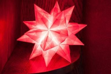 Keywords: poinsettia symmetry atmospheric festive light origami art of paper folding fold 3 dimensional object star geometric body red shiny
