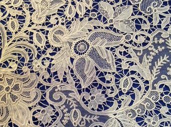 Keywords: point de rose 19th century needle lace detail from a meter side white yarn knitted fabric