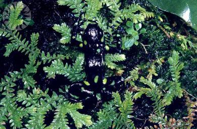 MAKE A MEME View Large Image ...Green spotted poison dart frog found in the jungles of Darien, Panama. Dendrobates Auratus Male carries tadpoles, common in canal zone, Taboga Island and Darien. ..Credit: Carl C. Hansen (Smithsonian Institution) SI Neg. 89-4814. Date: ...