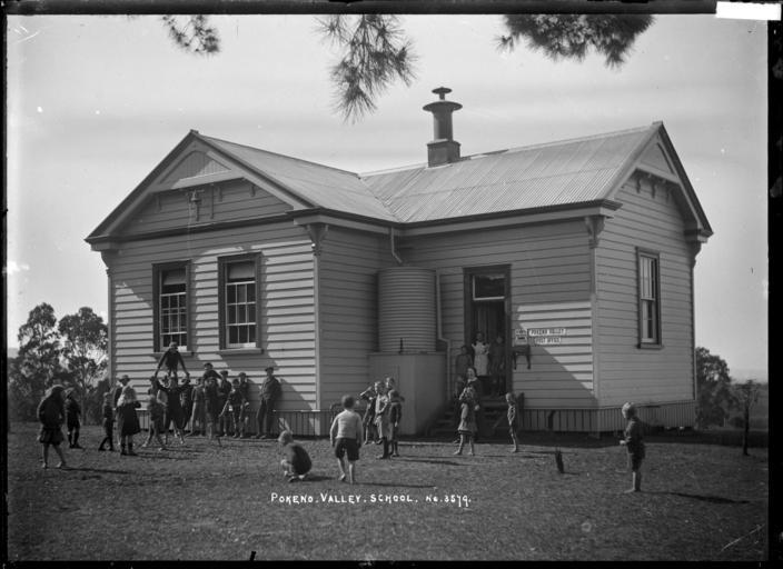 | Keywords: blackandwhite monochrome architecture building outdoor black and white View of children at play on the grassy area outside Pokeno Valley School.The sign beside the entranceway reads `Pokeno Valley Post Office". Photograph taken by William Archer Price between 1910 and 1930. Inscriptions: Inscribed - Photographer's title on negative -bottom centre: Pokeno Valley. Schol. No 3579. Quantity: 1 b&w original negative(s). Physical Description: Dry plate glass negative 4.5 x 6.5 inches Pokeno Valley School, Pokeno. Price, William Archer, 1866-1948 :Collection of post card negatives. Ref: 1/2-000119-G. Alexander Turnbull Library, Wellington, New Zealand. natlib.govt.nz/records/22785688 View of children at play on the grassy area outside Pokeno Valley School.The sign beside the entranceway reads `Pokeno Valley Post Office". Photograph taken by William Archer Price between 1910 and 1930. Inscriptions: Inscribed - Photographer's title on negative -bottom centre: Pokeno Valley. Schol. No 3579. Quantity: 1 b&w original negative(s). Physical Description: Dry plate glass negative 4.5 x 6.5 inches Pokeno Valley School, Pokeno. Price, William Archer, 1866-1948 :Collection of post card negatives. Ref: 1/2-000119-G. Alexander Turnbull Library, Wellington, New Zealand. natlib.govt.nz/records/22785688 |
