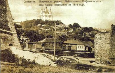 | Keywords: Pokrovsky break in Smolensk.jpg en Pokrovsky break in Smolensk on site Stefano towers of the wall exploded in 1812 ru Пок овский п олом в Смоленске на месте Стефанской башни к епостной стены взо ванной в 1812 году О игинальная отк ытка е установлены before 1917 года PD-RusEmpire 20th-century postcards of Russia Postcards of Smolensk Historical photos of Smolensk fortress Historical images of Smolensk | ||||