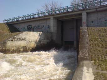Keywords: POL Racibórz Sluza prawo.JPG pl Śluza na Odrze w Raciborzu own Olos88 Bridges in Racibórz Oder River in Racibórz