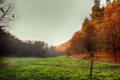 Keywords: poland landscape fall autumn forest trees sky clouds field grass hdr