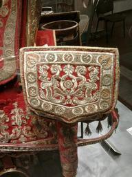 | Keywords: Poland Parade tack 03.jpg Poland firsthalf other date century 18 silver thread silk velvet leather wood niello gilt Institution District Museum in Tarn贸w Town Hall accession number object history credit line The tack is one of the finest examples of 18th century horse equipment created for the Polish 揕ithuanian Commonwealth's magnateria own See below cc-zero DEFAULTSORT 1701-1750; Parade tack Horse tacks in the District Museum in Tarn贸w | ||||