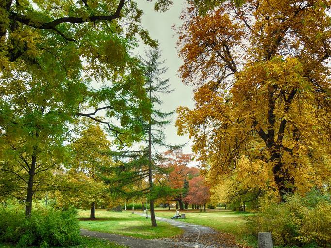 Keywords: poland park autumn fall trees colors colorful foliage path trail grass nature outside hdr