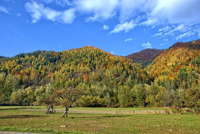 Keywords: poland pieniny autumn the sun colors foliage holiday landscape mountains nature green trail forest tree view tourism sunny travel the horizon peace of mind the silence blue sky sky colorful