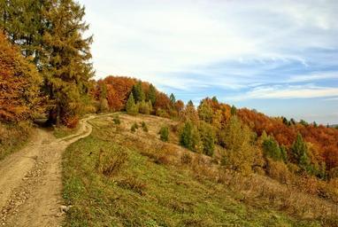 Keywords: poland pieniny autumn the sun colors foliage holiday landscape mountains nature green trail forest tree view tourism sunny travel the horizon peace of mind the silence blue sky sky colorful