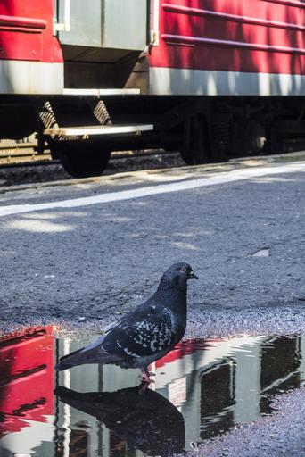 Keywords: poland railway station train wagon dove water pool pool mirroring platform red railway