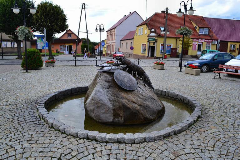 Keywords: poland village monument rock buildings architecture street trees sky clouds outside summer spring