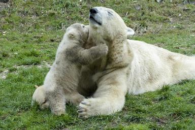 Keywords: polar bear female cub animal mammal nature wildlife arctic predator outdoors endangered natural fur danger playful wild aquatic life marine