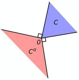 Keywords: Polar cone illustration.svg The polar of the closed convex cone C is the closed convex cone Co and vice-versa own Oleg Alexandrov Made with Inkscape Convex geometry Optimization Files by User Oleg Alexandrov from en wikipedia