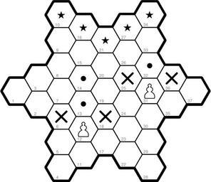 | Keywords: Polgar starchess pawn.svg en Polgár ™s hexagonal chess “ moves of the pawn 2013-08-05 10 56 16 own László Németh ; Created in LibreOffice 4 with this LibreLogo program +object to path conversion ; of FreeSerif chess figures of the final SVG by Inkscape for Wikipedia SVG rendering ; Usage Put this code into an English language document in LibO Writer ; and click on the Start icon of the View»Toolbars»Logo toolbar ; requested chess font http //mip noekeon org/HTMLTTChess/chess_merida_unicode html ; for other setup positions modify the arguments of the chess call in the end of the file GLOBAL FIX_SVG_EXPORT FIX_SVG_EXPORT 3pt ; 3pt FOR SVG export OR SET zero FOR other usage TO hexagon s n p POSITION H HEADING PENUP LEFT 30 FORWARD s LEFT 120 PENDOWN PENCOLOR BLACK FILLCOLOR WHITE REPEAT 6 FORWARD s LEFT 60 FILL PENUP POSITION p HEADING 0 LEFT 155 FORWARD 4 5 s/7 HEADING 0 FONTCOLOR GRAY FONTSIZE 10 FONTFAMILY Nimbus Sans L LABEL n PENUP POSITION p HEADING H END TO zigzag size REPEAT 2 FORWARD size RIGHT 60 FORWARD size LEFT 60 END TO chess WHITE BLACK PENCOLOR BLACK ; PENDOWN RIGHT 60 FILLCOLOR INVISIBLE PENSIZE 2 FILLCOLOR BLUE PENSIZE 10 PENDOWN HEADING 0 RIGHT 30 size 35 REPEAT 6 zigzag size FORWARD size LEFT 60 zigzag size RIGHT 120 CLOSE LEFT 60 PENUP FORWARD size PENUP PENSIZE 2 data K ™” ™šî‰” Q ™• ™›î‰• R ™– ™  B ™— ™  N ™˜ ™žî‰˜ P ™™ ™Ÿî‰™ o ¢ ¢ ¢ x • • • ‘ ‘ ‘ HEADING 0 n 0 figures WHITE + + BLACK + M SQRT size 2 “ size/2 2 n 0 FOR i IN 0 1 4 6 5 5 6 4 1 PENUP RIGHT 90 FORWARD size 1 5 LEFT 90 BACK i 2 M + M REPEAT 1 2 7 6 5 6 7 2 1REPCOUNT-1 n n + 1 hexagon size n p QKBRNP d n what SEARCH p figures IF what what what start FONTFAMILY Chess Merida Unicode FONTSIZE 45 H HEADING HEADING 0 FORWARD FIX_SVG_EXPORT k datafigureswhat FONTCOLOR WHITE LABEL k2 FONTCOLOR BLACK LABEL kwhat > COUNT WHITE BACK FIX_SVG_EXPORT HEADING H FORWARD M 2 END HOME CLEARSCREEN PENUP POSITION 70 PAGESIZE1/2 PENJOINT MITER HIDETURTLE ; PICTURE Polgar_starchess_pawn svg ; from LibO 4 1 1 PICTURE chess P12 o13 o14 x6 x18 P31 o32 x25 x36 10 16 21 27 34 cc-zero Hexagonal chess Created with LibreOffice Valid SVG Uploaded with UploadWizard Images with LibreLogo source code |