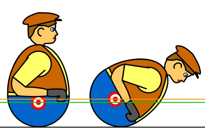 Keywords: Poli Gus N rocked.svg roly-poly toy viewed from the side The red and white bullseye represents the figurine's center of mass COM The figurine is shown upright left and tilted by 60 degrees right Three horizontal lines are overlaid black for the ground green for the height of the COM when upright and orange for the height of the COM when tilted own Damian Yerrick 2009-08-15 File Poli Gus N hollow svg File Poli Gus N upright svg cc-zero SVG mechanics Center of gravity Roly-poly Stability theory |