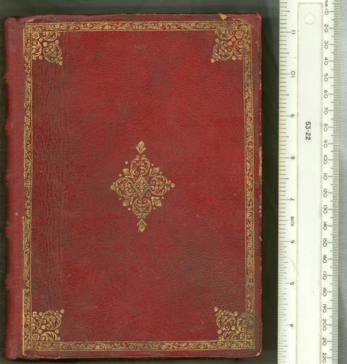 Keywords: Polibio... dell'impresse de Greci de Gli Asiatici de'Roman.. - Upper cover (293g20).jpg Style Centre and cornerpiece made of small tools Acorn; Caption Upper cover; Colour Red; Edge Gilt exhibition history Decorative Technique Tooled in gold; Cover Material Goatskin includes morocco turkey etc Once in the collection of Consul Joseph Smith in Venice ink ms notes by royal librarian Barnard Purchased for George III Text resewn and original spine piece onlaid inside Paste paper endleaves Probably from the workshop of Joseph Smith's binder in Venice object history Text 1563; Venice; Smith Joseph Consul George III King of Great Britain 1760-1820 object type Cc-zero place of creation Binding Italy place of discovery Stephen Parkin 'A note on the copy of Dell ™imprese de ™ Greci ¦ of Polybius 293 g 20 in the British Library' in ANDREA PALLADIO AND THE ARCHITECTURE OF BATTLE WITH THE UNPUBLISHED EDITION OF POLYBIUS ™ HISTORIES 2009 British Library image http //www bl uk/catalogues/bookbindings/LargeImage aspx RecordId 020-000016716 ImageId ImageId 55915 Copyright BL Polibio dell'impresse de Greci de Gli Asiatici de'Roman Uploaded with GWToolset Polibio dell'impresse de Greci de Gli Asiatici de'Roman - Upper cover 293g20 http //www webarchive org uk/bldatasets/bindings/293g20 jpg Bookbinding 18th-century bookbinding British Library Bookbindings |