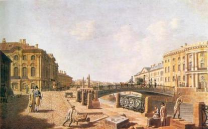 | Keywords: PoliceBridge1811.jpg artwork langswitch In the foreground at the intersection of the Moika and the Nevsky Prospect the Politseisky Green Bridge built in 1720 rebuilt between 1806 8 designed by V Geste and the embankment faced with granite between 1798 1810 Over the bridge to the left a portion of Stroganov's Palace 1752 54 designed by B F Rastrelli ; behind it lateral wings and a stone-built encircling wall of K Razumovsky's Palace 1762 66 designed by A Kokorinov and J -B Vallin de la Mothe which housed the Foundling Hospital and the Female OrΒphanage since 1798 To the right General N Chicherin's house built between 1768 71 on the site of the pulled-down timber-built Winter Palace of Empress Elizabeth which was designed by B F Rastrelli in 1755 ΠΠ·ΠΎΠ±Ρ Π°ΠΆΡΠ½ ΠΠΎΠ»ΠΈΡΠ΅ΠΉΡΠΊΠΈΠΉ ΠΌΠΎΡΡ Π½ΡΠ½Π΅ - ΠΠ΅Π»ΡΠ½ΡΠΉ ΠΌΠΎΡΡ Π’ΠΎΡ Π²ΠΈΠ΄ Π² ΠΊΠΎΡΠΎΡ ΠΎΠΌ Π΅Π³ΠΎ ΠΏΠΎΡΡΡ ΠΎΠΈΠ» ΠΠΈΠ»ΡΡΠΌ ΠΠ΅ΡΡΠ΅ Π‘ΠΎΠΎΡ ΡΠΆΠ΅Π½ΠΈΠ΅ Π³Ρ Π°Π½ΠΈΡΠ½ΡΡ