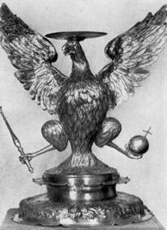 | Keywords: Polish Eagle heraldic base.jpg Artwork Creator Abraham Drentwett I and Creator Heinrich Mannlich Abraham I Drentwett eagle Heinrich Mannlich base 1665-1666 gilt silver cm 89 Institution Moscow Kremlin Armoury accession number MZ 191 object history ca 1665 commission John II Casimir Vasa Warsaw ProvenanceEvent 1671 gift Alexis I of Russia Moscow Michael Korybut Wiśniowiecki Warsaw credit line The flat plate at the top of the eagle's head served as a stand for a royal crown Archive of the Moscow Kremlin Museums See below Photo Photo Archive of the Moscow Kremlin Museums author 1917-1922 PD-old-100 DEFAULTSORT 1665-1666; White Eagle of Poland White Eagle of Poland by Abraham Drentwett I |