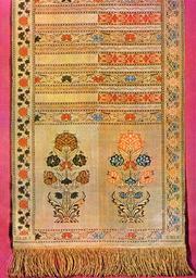 | Keywords: Polish noblemen scarf 18th century.jpg Slutsk sash Pas słucki Слуцкі пояс silk gold thread Made in the Persiary Persjarnia - manufacture in Slutsk Słuck Jan Samek 2001 Polskie rzemiosło artystyczne - spektrum sarmatyzmu w epoce baroku Wydawictwo Uniwersytetu Śląskiego Artist Slutsk century 18 Copyright expired PD-Art Other versions PD-old-100 Sluck sashes |