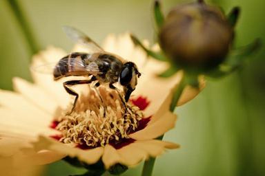 | Keywords: usgs science pollinator bee insects ecosystems fly biology pollination Pollinating — Here we see a hoverfly fly (aka - syrphid fly or flower fly) landing on a flower at a local nursery to grab a quick batch of pollen. Although we may not think about it often, pollinators are very important both to ensuring that crop plants produce full harvests and in maintaining or increasing biodiversity. Do you enjoy a hot cup of coffee, a juicy peach, an-apple-a-day, almonds, rich and creamy dates, a handful of plump cashews, or vine-ripened -- sun-kissed, plump tomatoes? If so, you depend on pollinators. Without the assistance of native and managed pollinators, most plants cannot reproduce. The USGS works to provide the science decision-makers need to support pollinator conservation. We are working closely with our federal, state, and other partners to model and better understand pollinator habitats and habitat requirements, and inventory native bees and other pollinators in protected areas, forests, and other land types throughout the United States. We are pioneering genetic studies of bees to better track where they’ve been and what plants they’ve visited and/or pollinated. Learn more about pollinator research at USGS: on.doi.gov/pollinators Photo credit: Scott Horvath. Pollinating — Here we see a hoverfly fly (aka - syrphid fly or flower fly) landing on a flower at a local nursery to grab a quick batch of pollen. Although we may not think about it often, pollinators are very important both to ensuring that crop plants produce full harvests and in maintaining or increasing biodiversity. Do you enjoy a hot cup of coffee, a juicy peach, an-apple-a-day, almonds, rich and creamy dates, a handful of plump cashews, or vine-ripened -- sun-kissed, plump tomatoes? If so, you depend on pollinators. Without the assistance of native and managed pollinators, most plants cannot reproduce. The USGS works to provide the science decision-makers need to support pollinator conservation. We are working closely with our federal, state, and other partners to model and better understand pollinator habitats and habitat requirements, and inventory native bees and other pollinators in protected areas, forests, and other land types throughout the United States. We are pioneering genetic studies of bees to better track where they’ve been and what plants they’ve visited and/or pollinated. Learn more about pollinator research at USGS: on.doi.gov/pollinators Photo credit: Scott Horvath. |