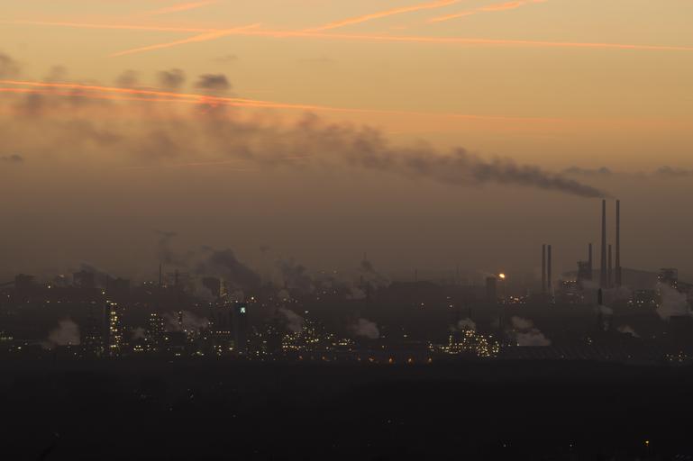 Keywords: pollution industrial plant steel mill blast furnace hut ruhr area north rhine westphalia factory metal environmental protection tstg tks duisburg thyssen tkse hamborn heavy industry exhaust gases germany chimney smoke industry krupp night