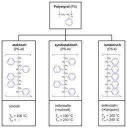 | Keywords: Polystyrene tacticity de.svg en The figure shows that polystyrene can be subdivided in atactic polystyrene isotactic polystyrene and syndiotactic polystyrene 2016-02-15 own Minihaa other fields + 1 d cc-zero Polystyrene SVG diagrams in German |