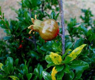 Keywords: pomegranate fruit young swollen green red tinting stem tree