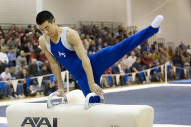 Keywords: pommel horse gymnastics male device apparatus routine performance exercise fitness man strength poise athlete concentration power competition equipment college