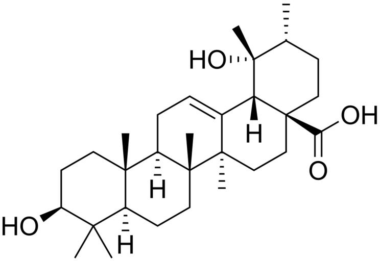| Keywords: Pomolic acid 200.svg validSVG Structure of 1R 2R 4aS 6aS 6bR 8aR 10S 12aR 12bR 14bS -1 10-dihydroxy-1 2 6a 6b 9 9 12a-heptamethyl-1 2 3 4 4a 5 6 6a 6b 7 8 8a 9 10 11 12 12a 12b 13 14b-icosahydropicene-4a-carboxylic acid Own 2014-03-07 Emeldir <span class signature-talk >talk</span> PD-chem Carboxylic acids Triterpenes |