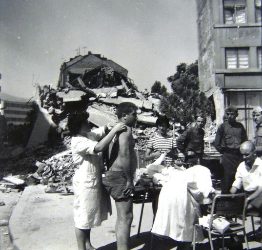 | Keywords: Pomos na nastradani.jpg mk Земјот есот во Скопје од 1963 година давање п ва помош на наст адани п ед хотел акедонија en 1963 Skopje earthquake giving first aid to casualties in front of hotel Macedonia DARM archive 1963-07-26 The State Archives of the Republic of Macedonia DARM Skopje Department author other versions Custom license marker 2016 05 19 Anonymous-EU Wikipedian in Residence at DARM 1963 Skopje earthquake | ||||