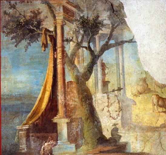Keywords: Pompeii - Temple of Isis 3 - MAN.jpg L'affresco che ritrae una Porta sacra con albero e tenda e un tempietto contenente una statua sullo sfondo rinvenuto nell'Ekklesiasterion del Tempio di Iside a Pompei è esposto nel Museo Archeologico Nazionale di Napoli inv 8558 cat 1 67 en Landscape Roman fresco from the temple of Isis in Pompeii Museo Archeologico Nazionale Naples inv nr 8558 de Landschaft Römisches Fresko aus dem Tempel der Isis in Pompeji Museo Archeologico Nazionale Neapel Marisa Ranieri Panetta ed Pompeji Geschichte Kunst und Leben in der versunkenen Stadt Belser Stuttgart 2005 ISBN 3-7630-2266-X p 117 WolfgangRieger 2009-03-13 PD-old-100 Paesaggi sacri dal Tempio di Iside in Pompeii 8558 |