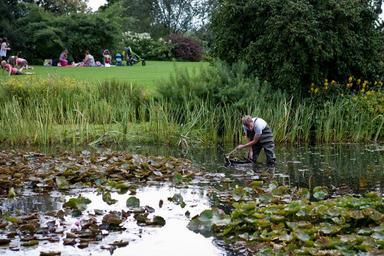 Keywords: pond clearing man waders lawn hyde hall essex uk
