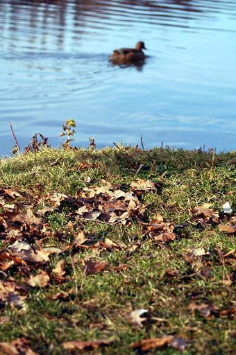 Keywords: pond duck leaves autumn autumn leaves landscape nature