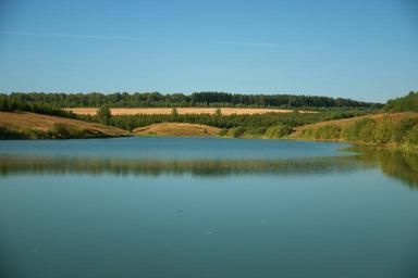 Keywords: pond water blue quiet body of water reflection in the water sky trees field hills spruce landscape nature summer forest tree lake