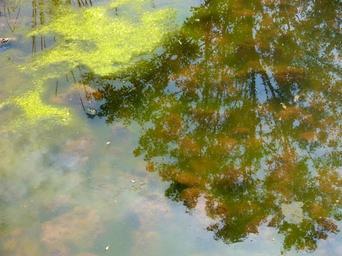 Keywords: pond water reflection algae aquatic plant green